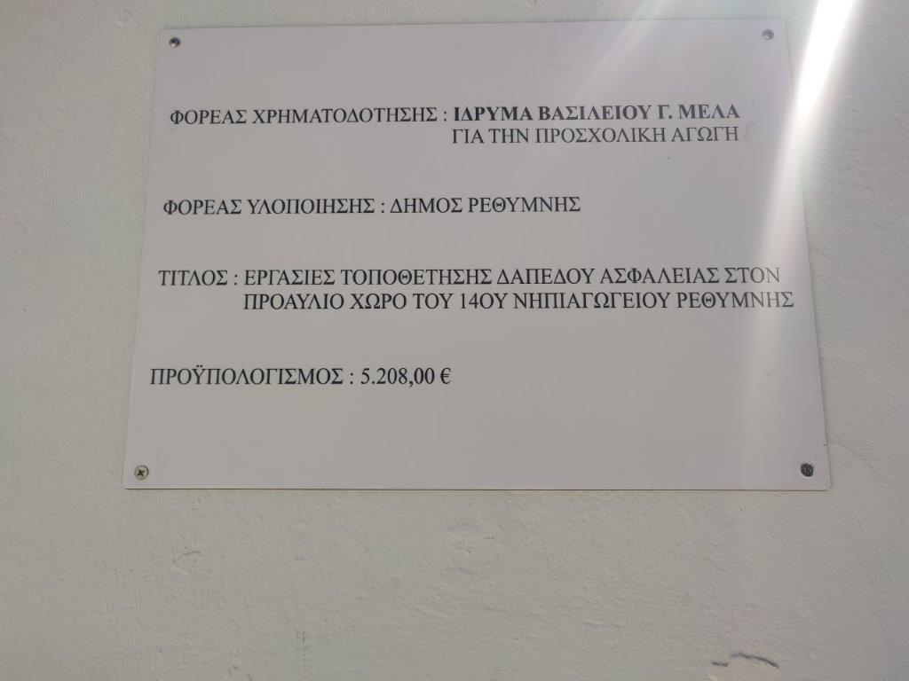 Στις 04/11/2024 ολοκληρώθηκε η προμήθεια και τοποθέτηση δαπέδου ασφαλείας στο 14ο Νηπιαγωγείου Ρεθύμνου
